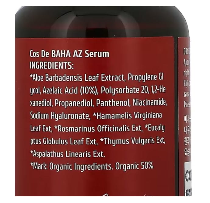 Cos De Baha Azelaic Acid 10% Serum to wysoko skoncentrowane serum przeciwtrądzikowe stworzone dla skóry problematycznej: z wypryskami, stanami zapalnymi, zaczerwienieniem i przebarwieniami potrądzikowymi. Dzięki połączeniu 10% kwasu azelainowego, niacynamidu, hamamelisu, pantenolu, aloe vera, kwasu hialuronowego oraz ekstraktów roślinnych, serum działa wielokierunkowo – leczy, regeneruje i wyrównuje koloryt skóry.
