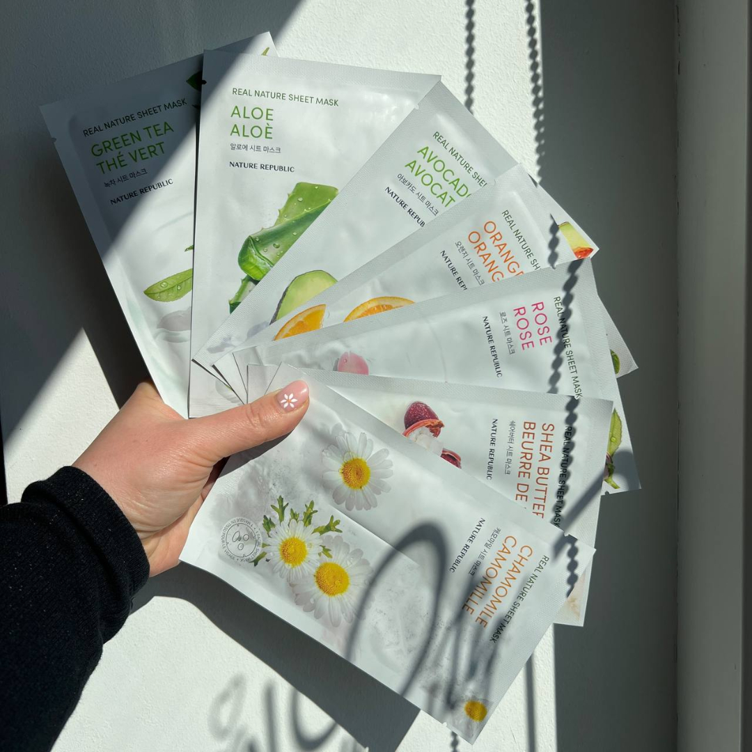 Szukasz skutecznego sposobu na szybką poprawę kondycji skóry twarzy? Zestaw NATURE REPUBLIC Real Nature Mask Sheet 7 szt to bestseller w kategorii koreańskich masek w płachcie, który zapewnia kompleksową pielęgnację: nawilżenie, regenerację, ukojenie i rozświetlenie skóry.